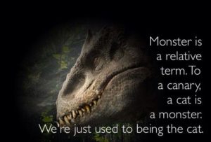 âMonster is a relative term. To a canary, a cat is a monster. We’re just used to being the cat.â Â Â ~Henry Wu